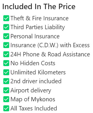Our rental rates are including CDW insurance, including delivery and collection of the car.